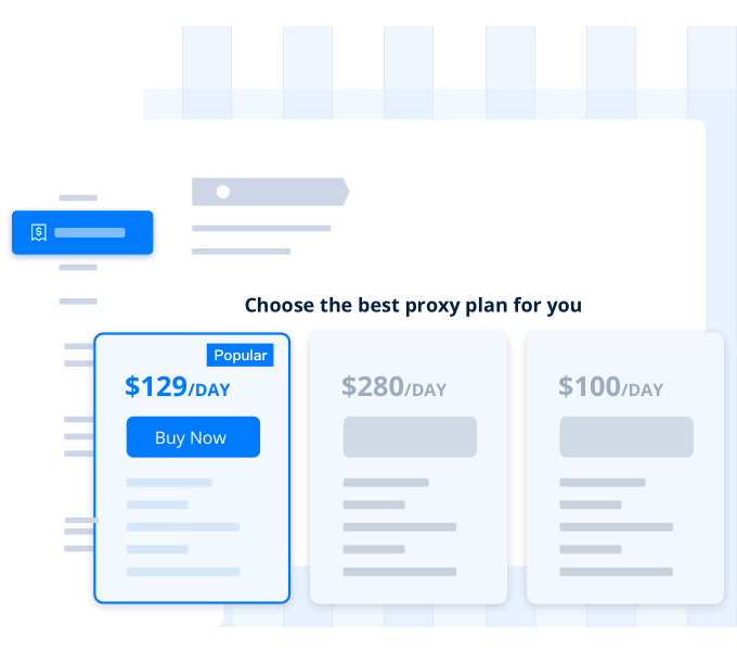 Get started with residential proxies by purchasing a plan, or get proxy on the go with pay-as-you-go. With any payment method you get access to the entire residential proxy pool of over 100M+!
